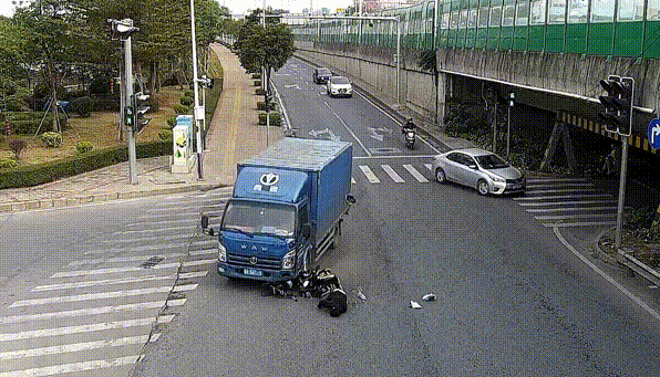 “猛男”货车在身旁,娇小”摩电看不见。货车盲区需提防,安全通行莫着急。