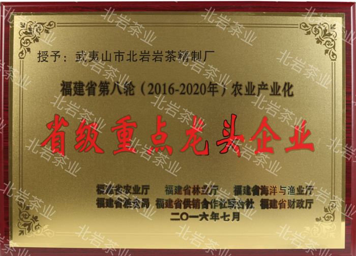 *北岩茶业荣获“福建省第八轮(2016-2020年)农业产业化省级重点龙头企业”