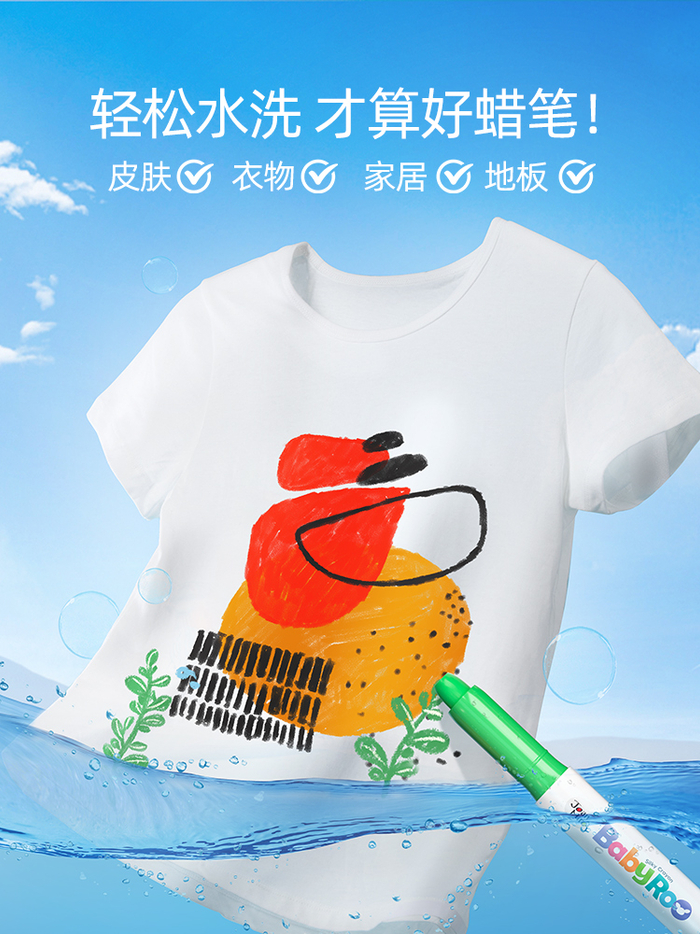 儿童美育,可以艺术地展现儿童的内心世界,培养他们美丽的心灵,启发创造力和想象力,是儿童成长路上的必修课。很多认识到此点的家长,不再束缚幼儿任性涂鸦的做法。不过很多家长暗暗发愁:萌娃涂鸦画画时经常弄脏小手、衣服和地板,每次清洗都要费不少功夫。蜡笔材质不够环保的问题,也让家长头疼不已。