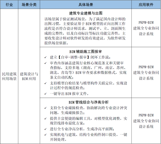 项目过程中已经使用或计划使用PKPM-BIM建筑全专业协同设计系统,项目可以在《BIMBase生态产品应用场景清单》中选择具体应用场景,并在指定平台基础上完成并通过项目场景验证。