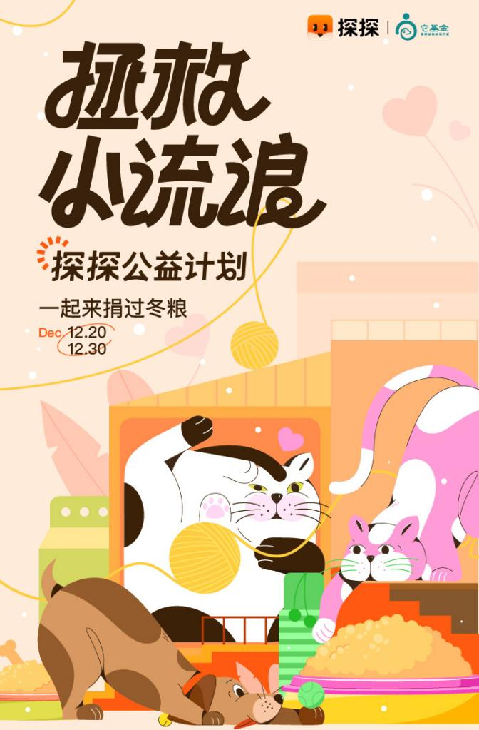 探探“拯救小流浪”公益计划上线 10吨宠物粮为流浪动物过冬吃饱饭