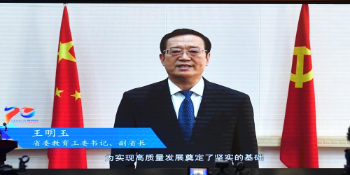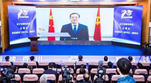 王明玉代表辽宁省人民政府向大海大全校师生员工和海内外校友表示祝贺,对学校70年来为全省教育事业和经济社会发展作出的积极贡献表示衷心的感谢。他指出,大连海洋大学是我国北方地区唯一的一所以海洋和水产学科为特色的高等学校,坚持“蓝色大学”发展理念,构建蓝色人才培养体系。70年来,学校为党育人、为国育才的初心不改,为党和国家培养了13万余名深耕海洋、水产事业的高级专门人才;70年来,学校面向海洋,认识海洋,经略海洋,“蓝海行动”科技成果转化活动品牌质效并举,有力支撑了辽宁海洋、水产产业转型升级;70年来,学校坚持奋斗实干、担当作为,积极推进校区建设,有效改善了办学条件,为实现高质量发展奠定了基础。近几年,学校涌现出来的学生抗疫突击队“风雪中移动的雕塑”事迹,被人民日报、央视《新闻联播》等多家媒体广泛报道,入镜主席2022年新年贺词和《中国共产党百年述职报告》,充分体现了学校为党育人、为国育才成效,为全省抗疫教育战线赢得了荣誉。他指出,学校要加强党的全面领导。坚持社会主义办学方向,加强领导班子建设,把政治标准和政治要求贯穿管党治党、办学治校全过程。要提高内涵建设水平。持续深化本科教学和研究生教育改革,加强一流学科专业建设,努力打造海洋、水产拔尖创新人才培养和科技创新高地。要提升社会服务能力。面向国家海洋强国战略和辽宁经济社会发展需求,深入推进产学研用协同一体化建设,加快成果转化,助力乡村振兴,为辽宁高质量发展贡献智慧和力量。他指出,省委、省政府将一如既往地全力支持大连海洋大学的建设发展,努力为学校发展创造更好条件。他希望学校在建设高水平海洋大学的新起点上,踔厉奋发、勇毅前行;在推进辽宁全面振兴、全方位振兴中再创佳绩、再立新功!