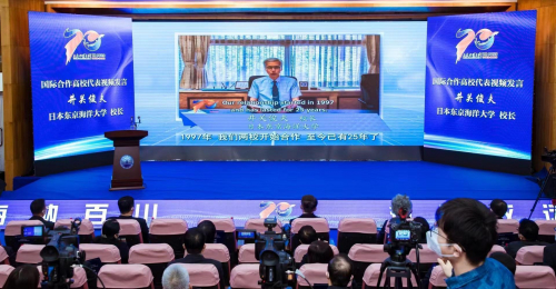 井关俊夫在致辞中表示,东京海洋大学已与大连海洋大学建交25年,25年来两校友情历久弥新,合作交流日益广泛,其中两校合作的“JCK”项目不仅促进了学术交流,更提升了东亚海洋专业人才的培养质量,衷心祝愿大连海洋大学再接再厉,再创辉煌。Megan Gibbons(梅根•吉布斯)在致辞中表示,新西兰奥塔哥理工学院与大连海洋大学在合作办学方面非常融洽,学生交流学习收获颇丰,衷心希望两校能够友谊长存,并向大连海洋大学建校70周年表示祝贺。Jan Young-Soo(张瑛秀)在致辞中表示,韩国釜庆大学与大连海洋大学已有22年的交流历史,两校友谊源远流长,在提升办学水平方面互相合作,互相鼓励,祝愿大连海洋大学日新月异,蒸蒸日上。