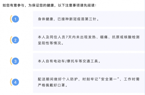 在接下来,顺丰同城还将继续发挥骨干企业的先锋作用,不断优化平台各项防疫举措,通过科学高效的防疫部署和招募举措,及时补充人力缺口,稳定运力底盘,在切实保障骑手配送的健康安全的情况下,为城市“最后一公里”配送打下坚实的基础!
