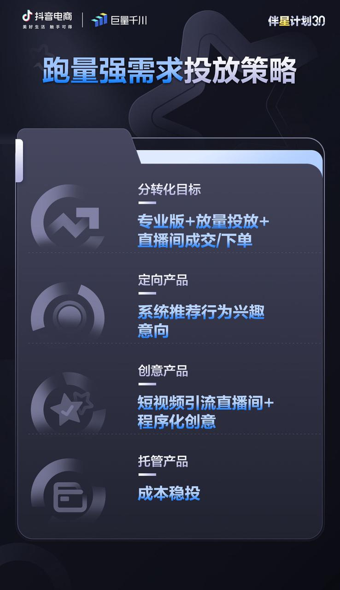 为给抖音电商服务商更多经营与投放启发,「伴星计划3.0」后续还将输出有关冷启动场景的策略和产品应用指南,敬请期待!
