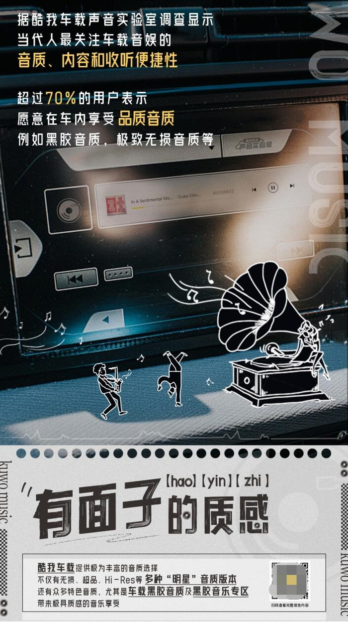 酷我车载针对车内环境,分析、测试形成各类音质的因素和标准,经深入研发,先后推出黑胶转录音乐、5.1环绕声音乐、银河音效、AI音效等领先成果,众多特色音质,不仅有无损、超品、Hi-Res等多种“明星”音质版本,还有车载黑胶音质及黑胶音乐专区,为用户带来极具质感的高端音乐享受,“面子感”十足。