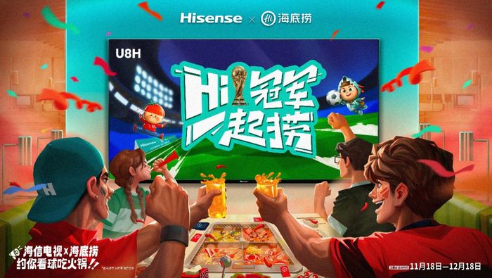 从线上到线下,跨界打造沉浸式体验:如何让企业与消费者实现零距离交流?在卡塔尔世界杯期间,海信电视充当了一次“线上看球、线下火锅”的连接者,让海信电视U8H等爆品与海底捞一起跨界联合来了场新“玩法”,实现多方位、多圈层渗透,为品牌注入更多全新的零距离触感体验。