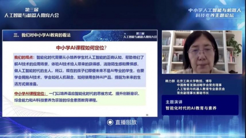 02.人工智能时代教学培养目标的转变本次教育大会上,北京工商大学教授韩力群指出:智能化时代需要从小培养学生对人工智能的正确认知,帮助他们了解AI技术的应用场景,体验AI技术给人带来的获得感,消除陌生感和畏惧感,做人工智能时代的主人。