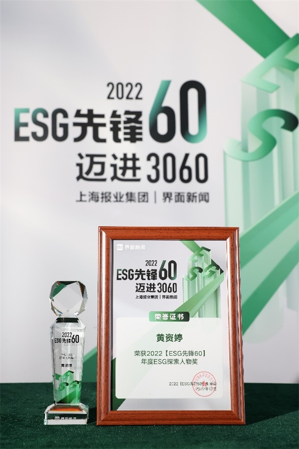 近日,在上海报业集团界面新闻主办的2022【ESG先锋60】评选活动中,宏碁全球总部共同营运长暨中国区总经理黄资婷荣获2022【ESG先锋60】年度ESG探索人物奖,此奖项旨在寻找全行业内在ESG领域中的行业先锋,最终评选出在可持续时代下具备前瞻洞察力与创新实践精神的行业专家与企业家,黄资婷正是一位知行合一的环保实践者、环保倡导者,一如她曾为宏碁永续事业所倡议的“这是一个宣誓,一旦开始不能停下,需要有担当的坚持!我现在开始做,你也可以!”。此次获奖既是对黄资婷推动行业作用的肯定,更是对宏碁集团ESG理念和成果的认可。