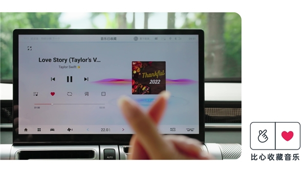 此外,随着车舱娱乐功能愈发丰富,繁复的人机交互也会给用户造成诸多不便。对此,商汤绝影还助力ADiGO SPACE实现了多种可玩性与实用性兼备的手势感知能力,能够理解用户举手投足的意图。用户通过挥手、转圈、OK、比心等手势动作,即可隔空完成切歌、切地图、拍照、点赞、歌曲收藏等操作,简单直观,方便快捷。
