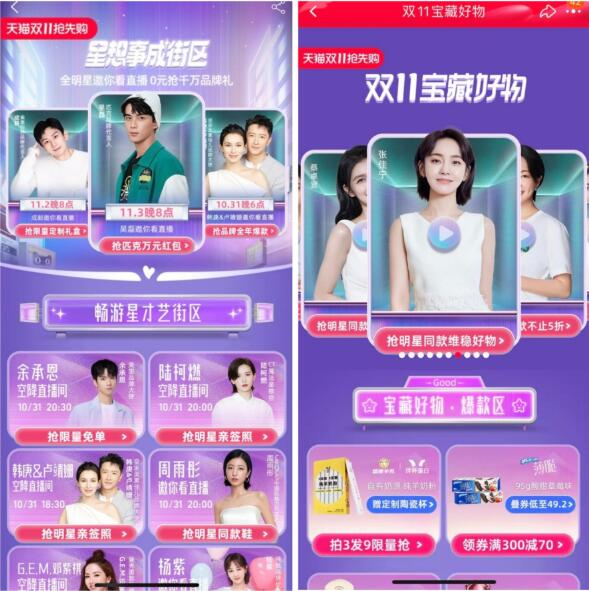 每位宝藏明星携手一个宝藏品牌,输出一条“宝藏品牌定制内容”,将品牌、产品与与明星个人标签进行深度结合,并开辟“宝藏品牌专属阵地”,借上升趋势的生活场景,由明星为单品牌定制内容多样的种草视频,最终打造出美妆护肤、美食灵感、生活好物三种风格独居又星光熠熠的「双11宝藏好物」种草街区,为消费者带来全新的内容种草体验。