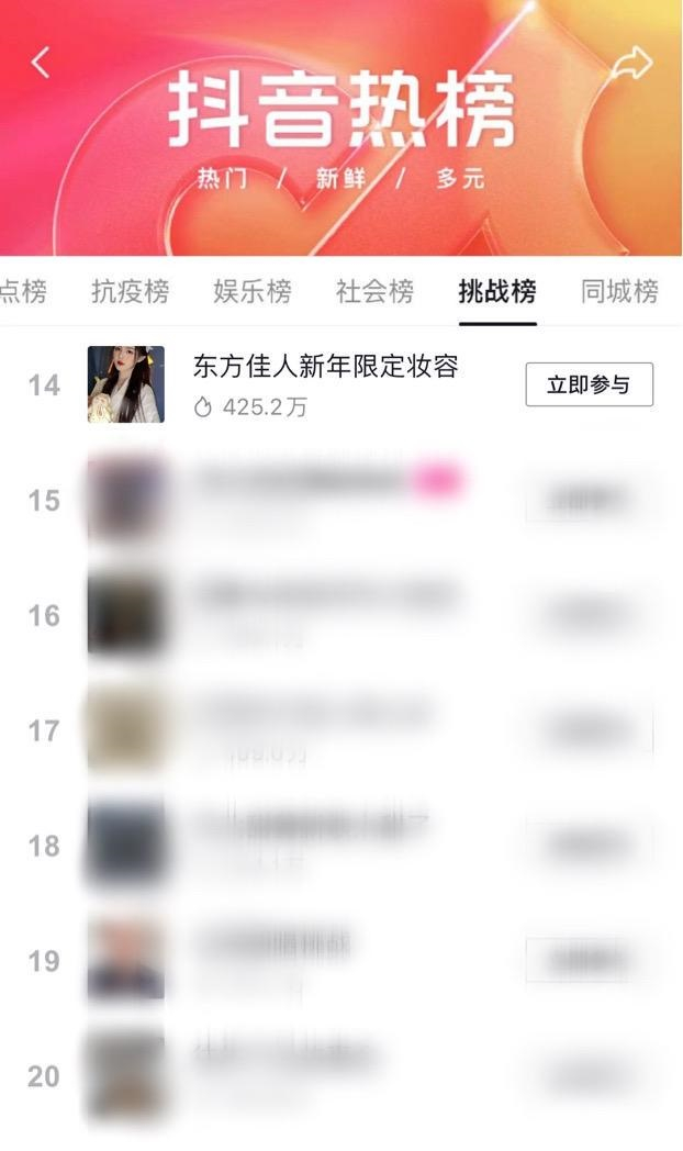 12月10日,花西子借「西湖隐园」开业之际,在线发布品牌大使白鹿新年氛围变妆视频,抛出新年玉兔降临主题,并联合抖音电商超级品牌日在抖音站内邀请不同达人发起#东方佳人新年限定妆容玉兔变装主题挑战赛,掀起新年氛围玉兔变妆热潮,引发全民互动和参与,激发起广大用户对花西子新年玉兔妆容的兴趣,迅速激活品牌公众感知。