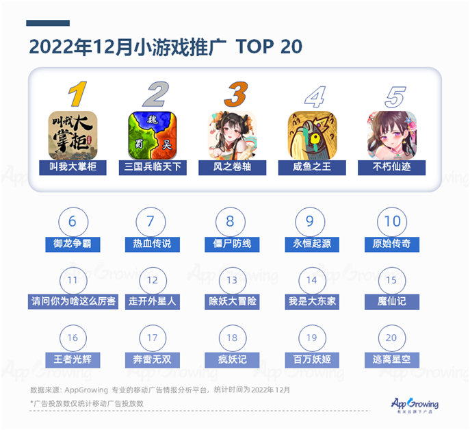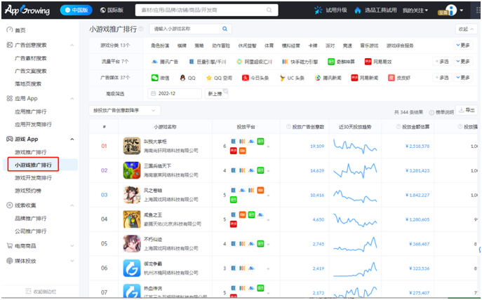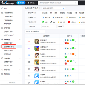AppGrowing上线小游戏推广排行榜,助力商家高效拓客