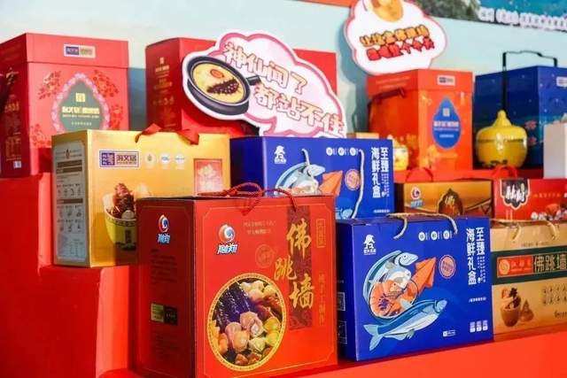 海文铭、聚春园、江船长、闽洋海蜇、麦渔、宏升水产、海天地食品、龙翔水产等佛跳墙一、二、三产企业代表产品悉数到场,展示佛跳墙全产业链发展成果。