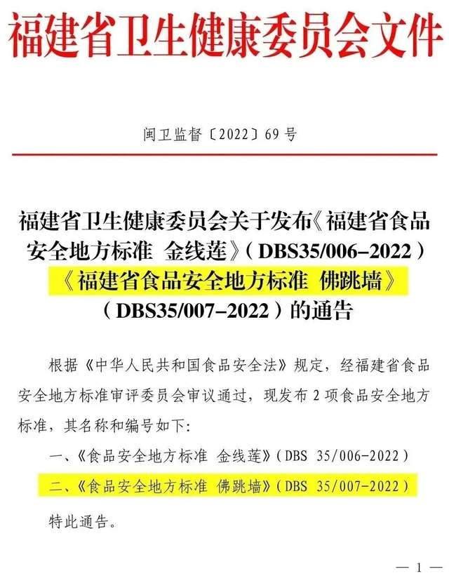 《佛跳墙福建省食品安全地方标准》在此次文化节上,正式对公众发布。此标准从佛跳墙预制菜的食品安全指标,各成分的含量、到相应等级商品的控价都有相关规定,一目了然。佛跳墙《福建省食品安全地方标准》的发布,标志着佛跳墙产业在标准化道路上迈出的坚实步伐。