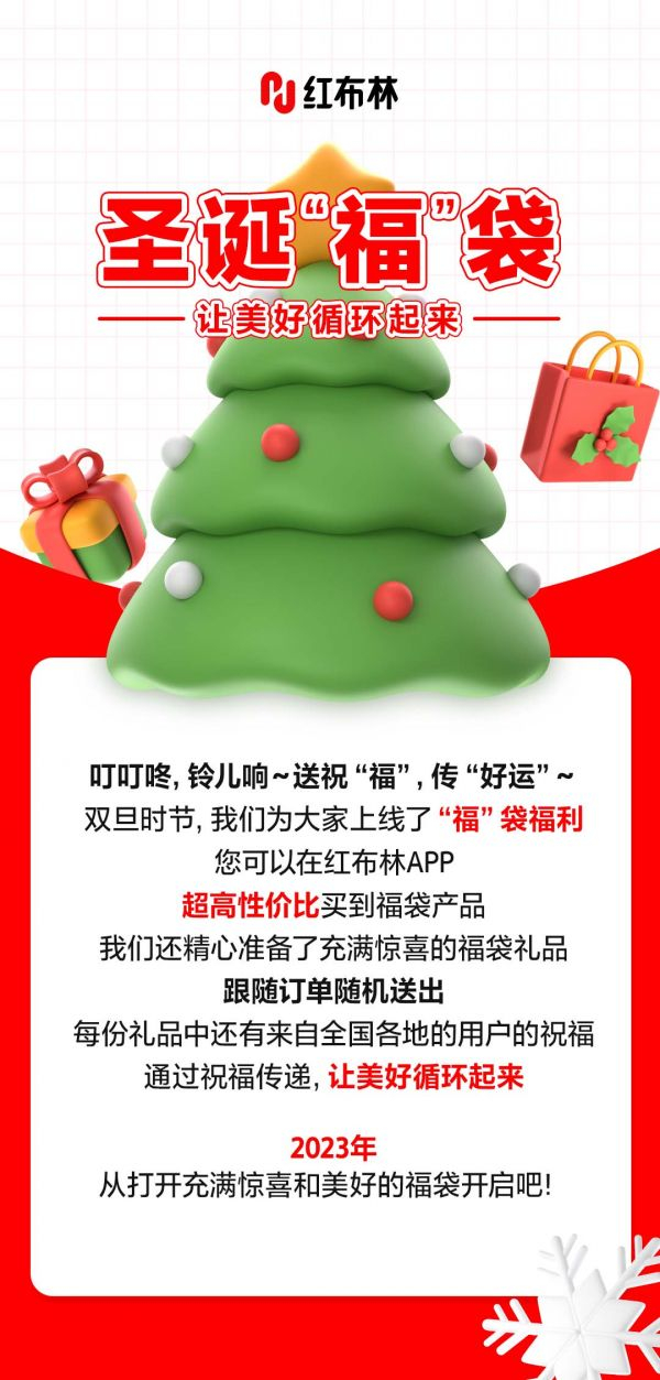 目前,红布林APP已经上线圣诞礼遇季活动。循环青年们快来红布林拆惊喜福袋,一起期待所有的美好如约而至!