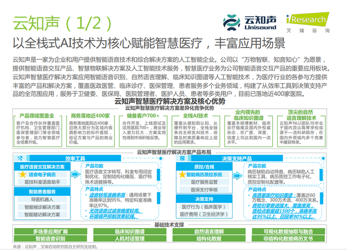 云知声入选艾瑞咨询《2022年中国医疗科技行业研究报告》