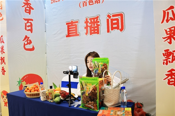 百色市商务局局长刘军模介绍,百色是农特产品大市。依托“气候多样性”这个优势,打造了粮、蔗、果、蔬、桑、茶、药七大产业齐头并进的农特产业格局。百色农特产品主要有三个方面的特点:一是品类多产量大。百色有植物资源2000多种,种类居广西之首,素有“土特产仓库”和“天然中药库”之称。盛产芒果、香蕉、脐橙、砂糖橘、猕猴桃、火龙果、茶叶、山茶油、灵芝、香菇、木耳、八渡笋、八角、板栗等。目前,全市果园面积265万亩,产量210万吨;其中,百色芒果种植面积134万亩,位居全国三大芒果产区第一位,成为国家级产业集群。茶园面积33.8万亩,位居广西第一;油茶种植面积超181.62万亩,位居广西第一、全国第三,产量9.11万吨。蔬菜种植面积181万亩,产量329万吨,其中秋冬菜种植面积139万亩、产量236万吨,各品种中,番茄占比最大,种植面积约30万亩,产量约100万吨。二是品质优销量广。全市无公害农产品基地认证面积47.23万亩,绿色食品基地认证面积55.72万亩,有机农产品基地认证面积24.39万亩,有机认证面积广西第一。全市获得国家地理标志认证35个,其中农产品地理标志17个。百色是全国重点南菜北运基地,建成“南菜北运”蔬菜基地176万亩,年产量近300万吨。三是品牌响上行多。全市整合资源,统一打造“百香百色”区域公共品牌,已经培育出享誉四方的“百色芒果”“百色番茄”“百色红茶”“百色山茶油”子品牌。其中,“百色芒果”区域公共品牌价值评估达173.23亿元,排全国第14位;影响力指数评价为83.955分,排全国第16位。在“2022年中国品牌价值评价信息榜”区域品牌(地理标志)排名从2019年第58位上升到第37位。2020年百色芒果成功入选受欧盟保护的中国首批100个地理标志产品。百色实施商务部电子商务进农村综合示范项目13个,构建了覆盖市、县、乡、村的四级电子商务服务体系。每年举办线上线下产销对接、“互联网+百色特产”等系列活动,通过直播电商、社区电商等新业态、新模式,打造上行农产品300多款、年销售1000万元以上电商企业30多家,推动了百色芒果、百色番茄等大宗农产品数字化营销,融入全国统一大市场,电商率超过65%。
