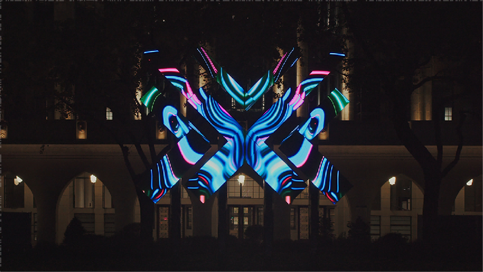 同时,LED面板中的画面邀请了数字视觉艺术家温子阳进行了内容创作,张周捷数字实验室在对内容甄选的同时,确保了装置从动态到交互灯光、展示画面的算法与mapping的开源属性,在愿景与现实中都保持开放与交流、沟通与超越边界。在未来,作品将交由研究院的成员继续围绕节庆、研究项目等不同的主题进行开发与创作。在研究院以跨学科、国际化、变革性的设计创新生态系统中,《DS# Transition 转化》将成为一个不断生长、进化,开发创造力与想象力,见证北外滩与DIIS孕育朝向明天的·全球的·前瞻的设计。