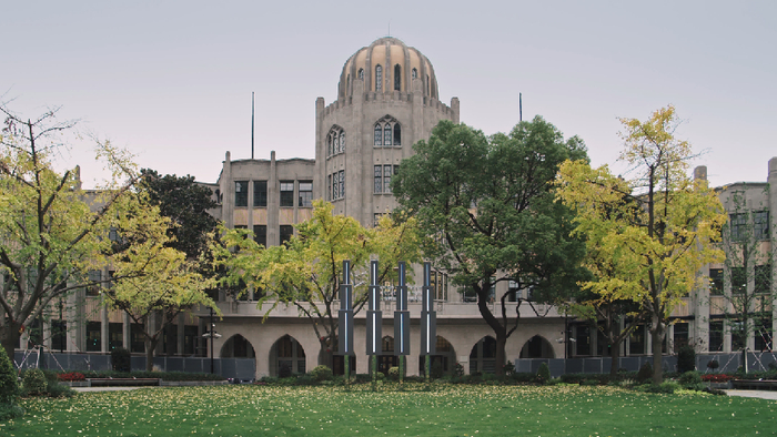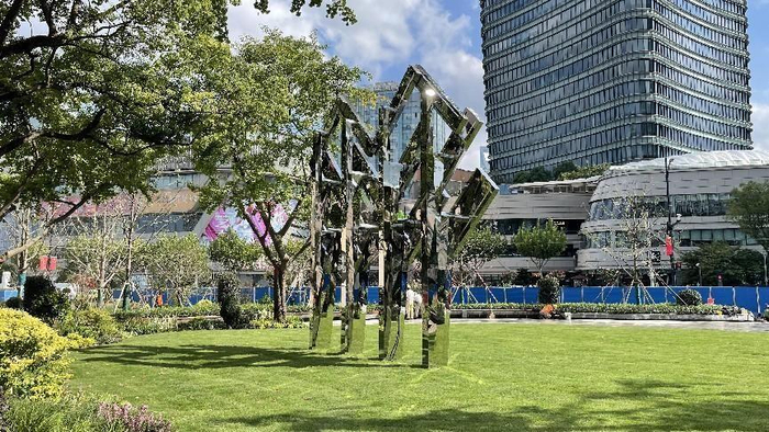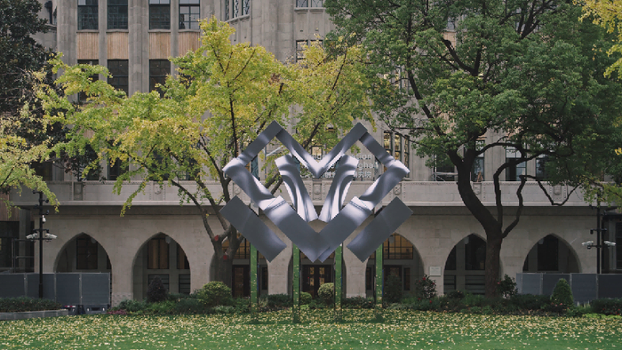 作为北外滩与DIIS地标的《DS# Transition 转化》坐落于研究院中轴线广场的中心位置,充满科幻色彩的装置是艺术和科技的结合,也是工程与美学的统一,象征着研究院的精神内核。装置主体以不锈钢镜面与LED等新型材料组装制造,材质与形式的运用与1934年建成的建筑主体厚重的砖石立面、哥特复兴与艺术装饰运动融合的风格形成呼应。装置以数字算法与开源互动的形式将关于未来的想象力注入了焕然一新的历史建筑中,象征了此地思想不断碰撞、交流和转化后的螺旋上升,科技和艺术、设计和商业、社会与研究等各种层面彼此交融转换,既昭示了今日设计之未来引擎,也延续了雷士德工学院开拓工学设计的文脉。