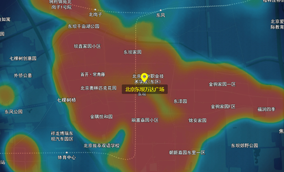 此外,据城市商业地图热力表现来看,以北京东坝万达广场为核心的半径3公里辐射范围内,周边60+个社区,多个写字楼、产业园区环绕,人口相对集中,日常活动范围聚集此板块之内,该板块内具有颇高的人口活力,人口活跃指数不断攀升,未来随着北京东坝万达广场开业入市,区域内的活跃人口将成为其庞大的客流基础。