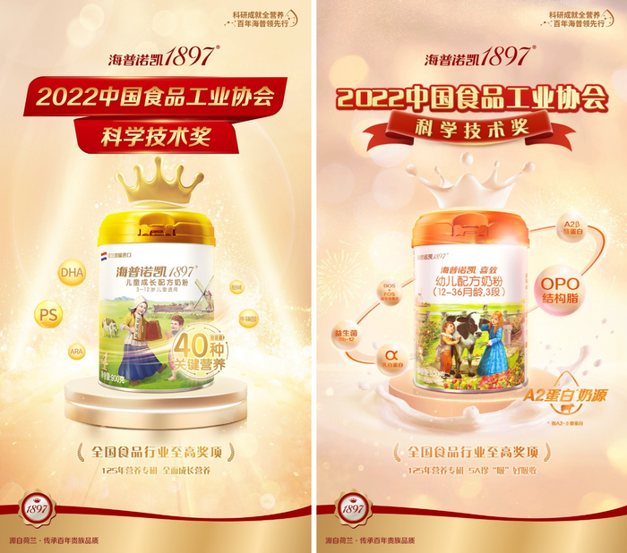 秉持125年荷兰制乳工艺历史的传承,海普诺凯一直专注母婴营养探索,致力于打造出种类更全、结构更优、含量更合理、配比更科学的全面营养产品,为母婴家庭提供更全面的营养守护。就拿此次获奖的海普诺凯1897喜致和儿童成长奶粉两款产品来说,针对不同阶段宝宝生长发育特点和营养需求,海普诺凯1897臻选自有精耕牧场优质奶源,量身定制配方提供全面营养守护,产品受到了众多消费者的认可与青睐。这足以说明海普诺凯1897能够很好地把握行业趋势,充分发挥科研力量,为母婴家庭提供高品质全面营养支持。