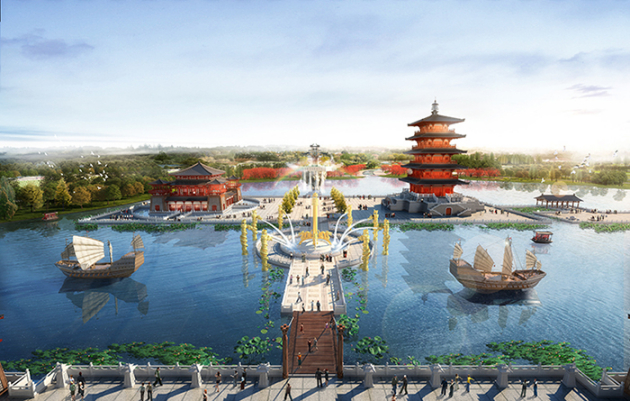 设计师: 我们依借“汉代文化”“儒家文化”为基础,创造不同的产业IP,围绕生态产业、文旅产业、康养产业、度假产业,打造出了如倬彼云汉、画舫烟云、汉风栾巢、汉风商业街、宫宴、夫子学宫、宫廷风云系列表演、书画街区等众多项目,通过“文化+品牌+表演+体验”的手段提升项目深度,使其能够贴合“汉代穿越”主题,为游人带来更为沉浸式的体验。