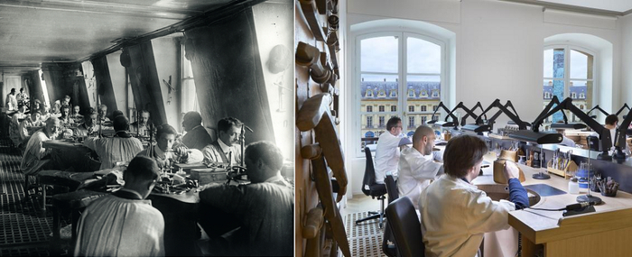 约 1900—1905 年间的CHAUMET宝石加工工坊 如今的CHAUMET高级珠宝工坊