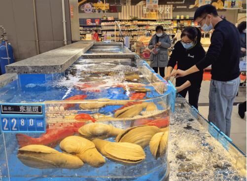 据介绍,升级后的档口覆盖了60多个品种活鲜、20多个品种贝类、130多个品种冰鲜,累计海鲜品类多达200多种。尤其增加引进了帝王蟹、波士顿龙虾、星空鲍、澳龙、长脚蟹、面包蟹、珍宝蟹、东星斑、黑虎虾、九节虾、象牙蚌等深受广大顾客喜爱的高品质活鲜。部分海鲜来自于阿拉斯加、澳洲等著名产区,采取空运方式直达合肥,既减少中间环节保证平价,又保证产品新鲜度。