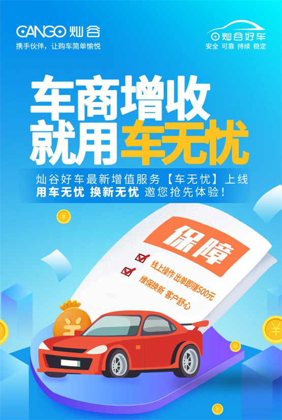 今年10月,“灿谷好车”APP上线包含新车潜客、金融、保险等多样化的服务化产品,为“老潘们”提供了新的解决路径。前段时间,老潘就使用“灿谷好车”APP的“车无忧”服务促成一单,提及这次合作,老潘开心地告诉我们“你们还是一如既往的快速,上午下单,下午就收到了促成奖励。”据悉,“灿谷好车”保险业务主要通过“车无忧”服务展现,功能全面、保期长、响应快、促有奖,是一款真正从车商角度出发的产品。