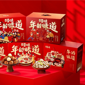 据悉,百草味在产品布局上以“年的味道”系列坚果礼盒为主导,主打过年场景,并联合国潮书艺术家朱敬一,推出联名款礼盒。同时,百草味还携手国家宝藏,打造IP联名系列国潮礼盒,并首次推出罐装坚果礼盒,组成年货礼盒矩阵,深度契合中国年的各式消费场景。