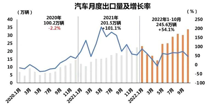 技术代差不断缩小,大众口碑日益提高,国产汽车正在开足马力驶向全球。据中国汽车工业协会统计显示,截至2022年10月,我国汽车企业已出口245.6万辆,同比增长54.1%。其中,新能源汽车和皮卡车的出口量更是迎来了大爆发,分别累计出口49.9万辆和15.23万辆。