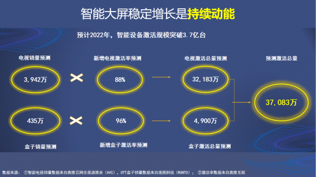 透过上述数据,智慧大屏巨大活跃规模、增量设备速度是保障以大屏为核心融合其它家庭智能设备的根基。有海量的存量活跃用户和持续不断的新增用户,应用的融合创新才有市场需求,营销创新才有基础。