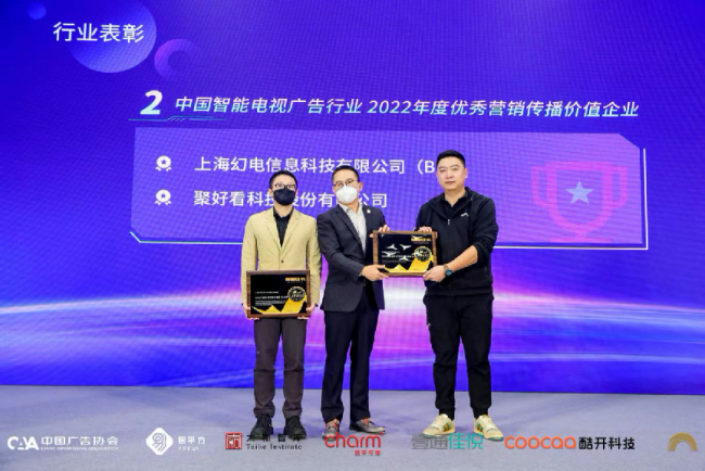 除了行业交流,此次峰会的压轴环节,为中国智能电视广告行业2022年度卓越营销传播价值平台、2022年度优秀营销传播价值企业、2022年度优秀营销创新企业、2022年度优秀营销传播服务商、2022年度特殊贡献企业进行了授牌仪式。