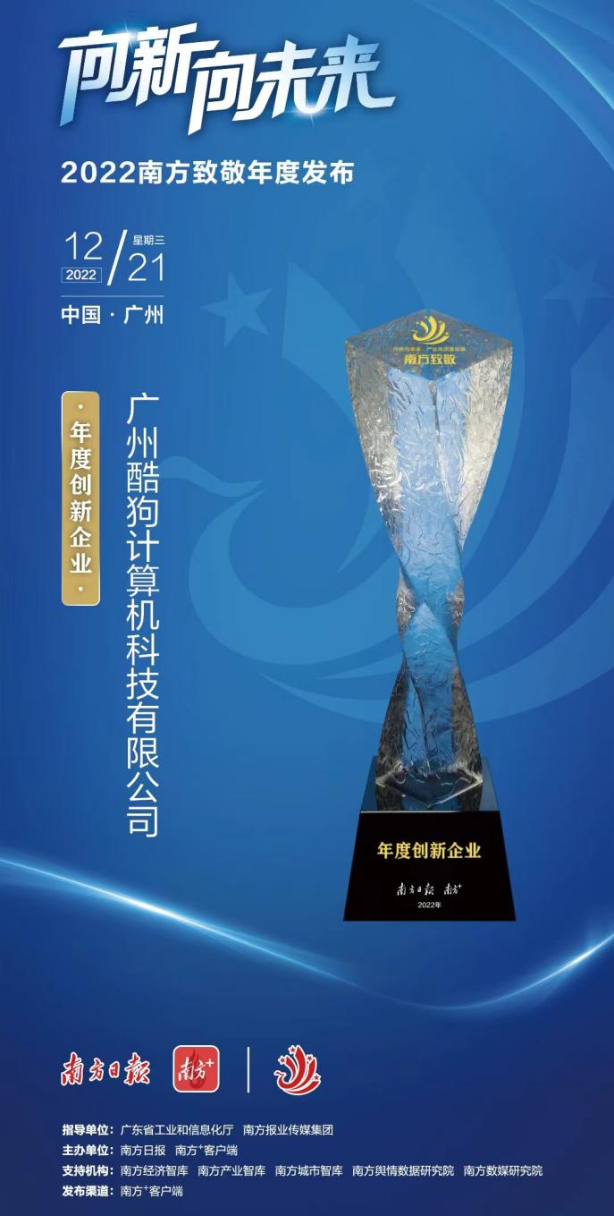 酷狗音乐获2022年“南方致敬·年度创新企业”奖
