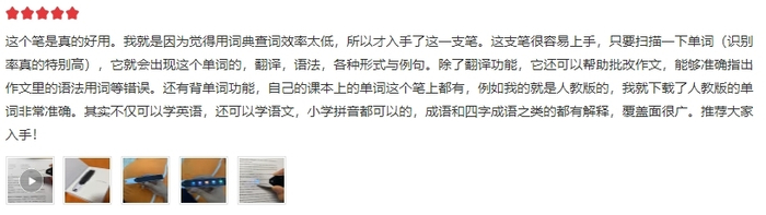 有评价为上知天文下知地理的——“使用简单,扫描准确,反应快,最喜欢的是语音功能,上知天文下知地理的,孩子用着方便!”
