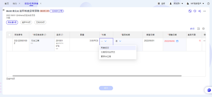(5)交期异常处理机制:针对交期异常的订单/项目,系统会主动发出影响通知与处理任务,加快回应速度,提升客户满意度;