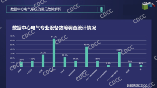 根据CDCC数据中心工作组对2022数据中心电气专业设备故障的调查统计分析,电气专业设备故障中,电池故障占比64%,UPS故障占比46%。因此,采用电池作为储能部件的UPS不间断电源系统的供电安全可靠性相对较低。