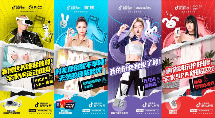 在此背景下,抖音电商新锐发布联合翼眠、C咖、徕芬、黄天鹅、PICO、官栈、万花镜、听研成功打造12月趋势发布多品牌专场,话题#年轻人是懂高质量宅家的 荣登挑战榜Top8、种草榜Top4,在榜时间超28小时,阅读量超2400W,全民任务#高宅商朋克养生 播放量超2.7亿,帮助趋势赛道新品牌实现宅家消费场景下的成长和爆发。抖音电商新锐发布为多品牌专场的电商营销如何达成“品、效、销”三者同时爆发,给出了一份立体的答案。
