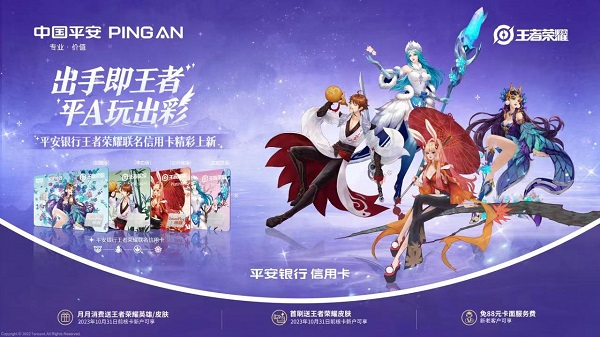 早在12月初平安银行"王者荣耀全民逐梦挑战杯" 大赛启动之际,双方携手推出行业首款典藏皮肤王者荣耀联名卡:小乔-天鹅之梦,其三款卡面分别使用光栅、浮雕和镶钻工艺,还原极致唯美的小乔荣耀典藏皮肤 "天鹅之梦",更通过首度引入王者荣耀游戏内权益“首刷送皮肤、月月达标送英雄/皮肤”,打造颜值党、实用派玩家挚爱。在延续硬核游戏权益之外,新的四款英雄卡面则主打国风审美,并以终身免卡面定制费的超值福利,打造王者荣耀联名卡入门之选。