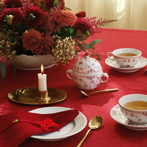 红色寓意着喜庆、好运与祥和,经过世代传承、沉淀和深化,红色亦是中国的文化图腾。皇家哥本哈根将透亮如宝石般的红色,幻化于经典半蕾丝唐草系列的纹样之上。全新宝石红半蕾丝唐草系列是对瓷器历史的追溯,更是对中国传统文化的致敬。