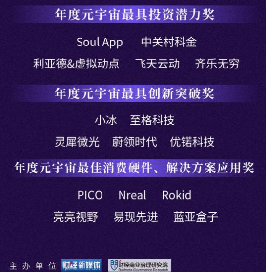 凭借在社交元宇宙领域的创新实践,在《财经》新媒体、《财经》商业治理研究院发起主办的“新奖”评选活动,Soul再次脱颖而出,获得“年度元宇宙最具投资潜力奖”。