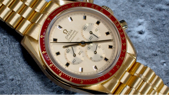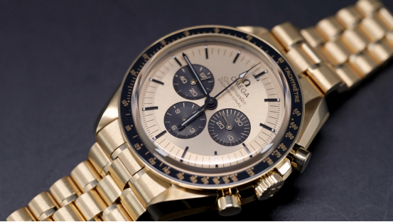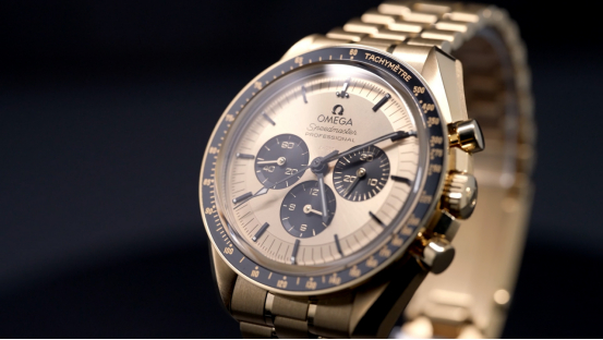 接下来的时间要留给这枚欧米茄大金表,表圈里有这样一句话:年少不知金表的好。其实人到中年,我倒觉得这话是有些道理的。跟大家举个不恰当的例子,2019年阿波罗11号50周年推出了两个限量款,一个是间金款,还有一个是全金款。首次采用3861机芯,而且还原了50年前送给第一批宇航员的表款。