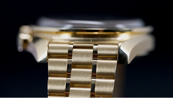 而且金表壳和金表带确实也比较压手,我个人的建议是在着装搭配上,不论是休闲装,还是略带正式的西装,金表都能hold住,这跟不锈钢腕表还是有很大的区别,即便你穿个花衬衫、大裤衩、人字拖戴着这样一枚金色的超霸出门,也没有任何违和感,这就是金表的独到之处。