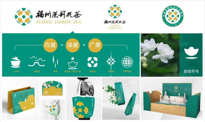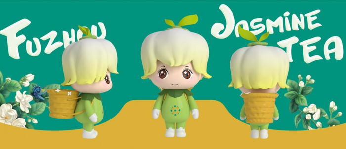 12月17日首届中国茶叶交易会·福州茉莉花茶文化节在福州市梁厝历史文化街区隆重举行。活动现场,福州茉莉花茶LOGO和茉莉花茶IP“福朵朵”正式发布。此次“福州茉莉花茶”品牌形象与IP设计通过巧度、深度、广度三重创意来表现LOGO的文化内涵。巧度上利用“三才碗”“马鞍墙”“茶坯”等元素巧妙融合,形成抽象、简约、绽放的茉莉花形态;深度上结合了中国结与茶情结的文化元素;广度上将国际元素融入其中,LOGO画面像地球的版图,四个“超级符号”组合代表四大洋;中心寓意一颗“茉莉龙珠”,代表福州是世界茉莉花茶发源地,是全球的核心产地,更表达出“海纳百川、有容乃大”的福州精神。福州茉莉花茶IP形象,是一个名为“福朵朵”的灵动呆萌的豆蔻少女。发型——茉莉花、发饰——茶坯、手臂——茉莉花苞、靴子——马鞍墙;栩栩如生地体现出了茉莉花的造型,并饱含了福州文化和茶文化元素,将每一朵茉莉花与茶的相融都孕育着满满福味的寓意传递出去,该设计创意一举夺得此次国家非遗项目品牌设计比赛的金奖。