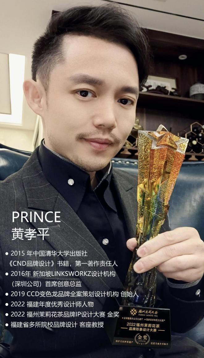 “福州茉莉花茶”品牌形象与IP经由福州变色龙文化传播公司创始人,著名设计师黄孝平原创设计。黄孝平深耕品牌设计行业20年,多年来成功服务过上百家国内外知名企业,2015年受邀参与中国清华大学出版社《CN品牌设计》编辑;2017年被全球顶级设计公司“LINKSWORKZ”邀请兼任中国区视觉创意总监;2022中国非遗福州茉莉花茶品牌IP设计大赛金奖。