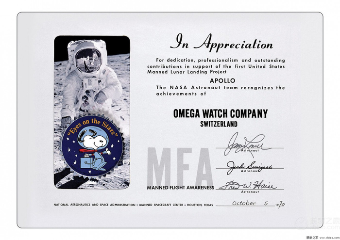 1970年,“阿波罗13号”在登月任务过程中,服务舱的氧气罐发生意外爆炸。在电力和自动系统受损的情况下,宇航员只能依靠手腕上的超霸腕表进行14秒计时,手动启动指令舱,最终准确进入地轨,安全返回地球。为感谢欧米茄在阿波罗任务中的卓越贡献,NASA特别向欧米茄颁发“史努比奖”。