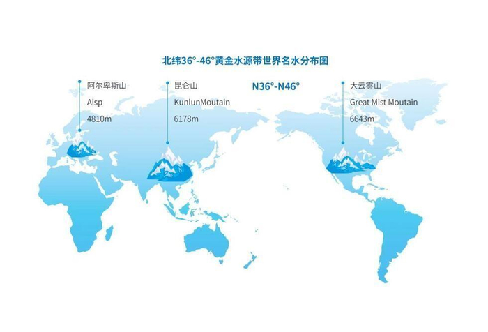 《报告》明确对“黄金水源带”进行了定义。“黄金水源带”是指集中在北纬36°至北纬46°地带的高海拔地区,远离人类污染,具有独特的自然环境和地质条件,降水、冰雪融水历经岩层多年的天然过滤,形成的极佳的天然饮用矿泉水分布区域。
