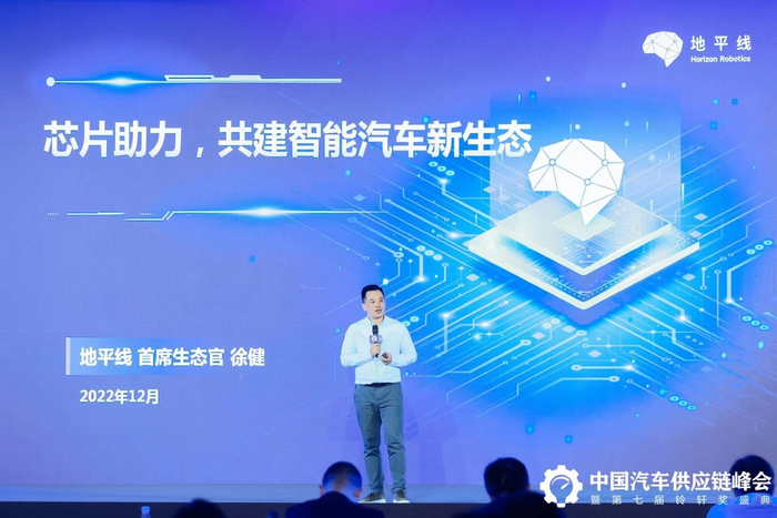 地平线首席生态官徐健带来题为《芯片助力,共建智能汽车的新生态》的开题演讲。