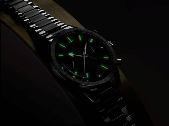 上层是镂空的小时刻度,而底层则以 Super-LumiNova 夜光涂层覆盖。